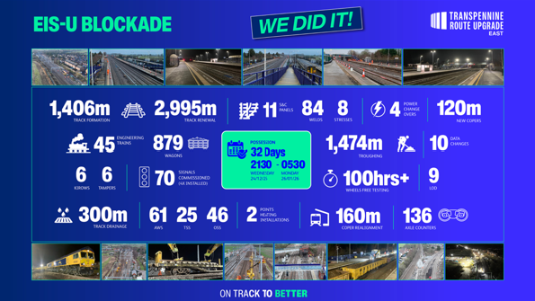 Helping deliver faster, greener, more frequent services across the North The Transpennine Route Upgrade (TRU) East of Leeds Alliance has delivered a significant package of improvements between Leeds and York, helping deliver faster, greener, more frequent services across the North. Following more than a year of planning, collaboration and preparation, the Entry into Service (EiS) U blockade has been successfully completed, after a successful 32 day blockade. This programme represents one of the largest and most complex pieces of work delivered by the TRU East Alliance, comprised of VolkerRail, Network Rail, Murphy, Siemens Mobility, and SYSTRA. The majority of the infrastructure re-modelling took place in and around the Church Fenton, with the blockade delivering two key EiS milestones: Stage 1: The culmination of two years of rail systems improvements. Within the first 100 hours, teams installed 17 kilometres of lineside containment and bases, creating a new route for low voltage power distribution, new signalling systems and new telecoms cables. These systems were commissioned into use between Leeds and Church Fenton, including new data and screen changes at York’s Regional Operations Centre, where the new signalling system will be controlled. Stage 2: The remainder of the blockade focused on re-modelling the infrastructure including 3km of track, eleven switches and crossings, 70 new signals, major earthworks and platform modifications to enable future line speed increases. Ahead of the blockade, the installation of Rose Lane Bridge and Barrowby Bridleway Bridge marked significant enabling milestones. These structures allowed eight level crossings/user works crossings in the surrounding area to be closed, delivering significant safety improvements and providing safer routes for pedestrians and vehicles to cross the railway. Jamie Rothwell, transportation managing director at Murphy, said: “This latest project milestone demonstrates the truly collaborative nature of the TRU East Alliance. At Murphy we are proud to have played our part in successfully completing this blockade and look forward to continuing to work together on upgrades in order to deliver faster, greener, more reliable train services between York, Leeds and Manchester. James Richardson, TRU managing director, said: “It’s great to have completed these critical railway upgrades, between Leeds and York. Facing all weathers, our teams worked around the clock during the Christmas period and through January, delivering a host of improvements for passengers, safely and on time. “Our work highlights the impact we are making in transforming the railway in the North of England, helping to enable economic growth, while building future capability for major projects.” This successful delivery reflects the collective effort of everyone involved, from on-site teams and support functions to those who played a critical role in planning, assurance and coordination. HIGHLIGHTS Successful 32 day blockade following a year of planning Within the first 100 hours, teams installed 17 kilometres of lineside containment and bases Major infrastructure re-modelling including 3km of track, 70 new signals, major earthworks and platform modifications